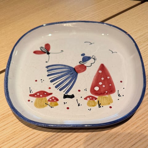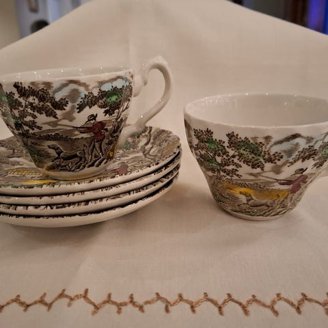 3 kuverter, asjett underskål og kopp selges for kr 150 pr kuvert..