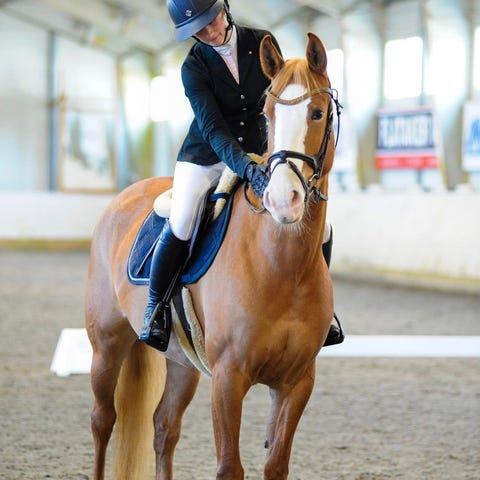 Flott dressur avlet hoppe med topp dressurstamme! God power og store flotte bevegelser, noe hun viste allerede som føll.