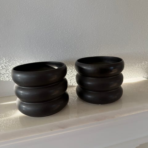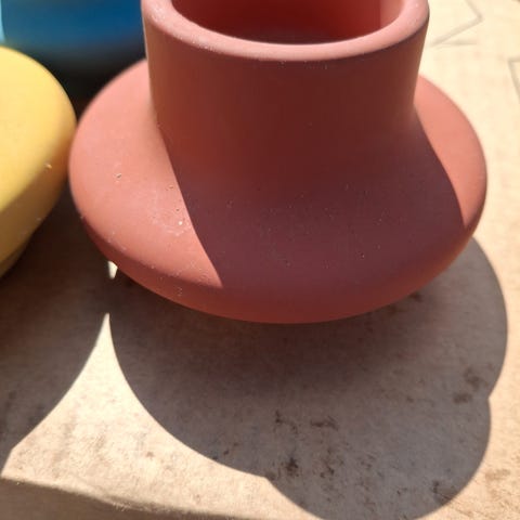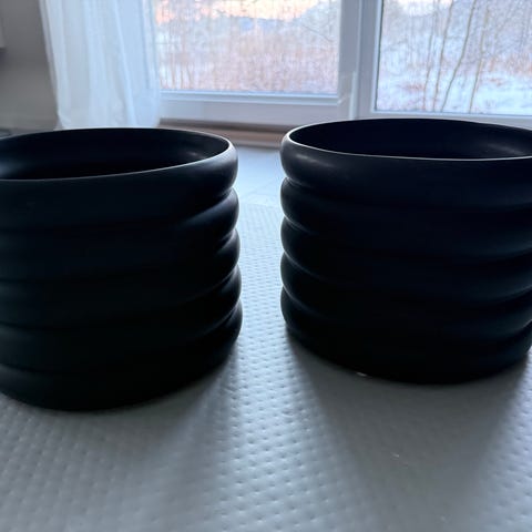 Pottene kan stables oppå hverandre om amn ønsker en høy potte
