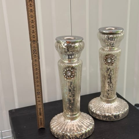8 store kubbe lysestaker i sølv og konfetti