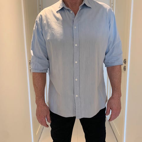 Skjorte med knapper i ermene men kan også bruke mansjettknapper.