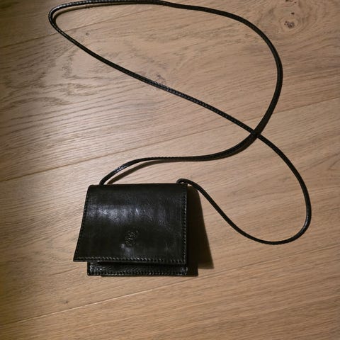 Veske i sort skinn, med justerbar skulderreim. Fra Ponzo, Italia