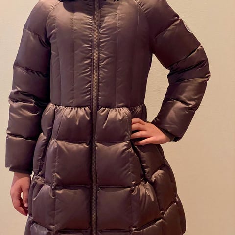 Kjempevarm og flott jakke til jente i str 12-14 år. Jakka har en rift på ca 0,5 cm på ene ermet(se bilde). Nypris er snaue 6000 kr.