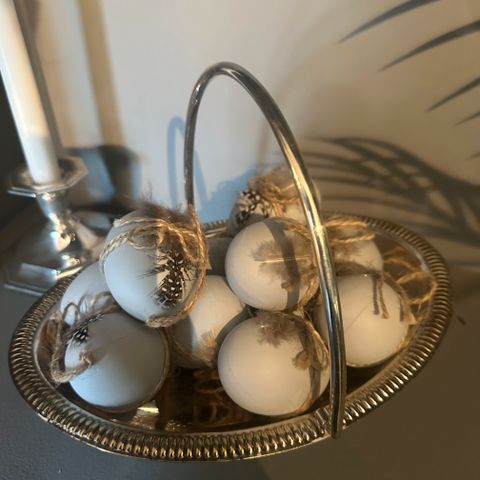 Mange flotte påskeegg i hvite og sølv selges billig. Jeg sender gjerne😊