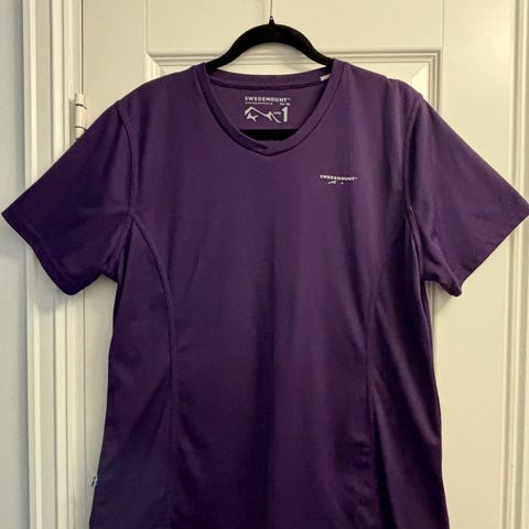 Swedemount langermet treningstopp dame str 46, pent brukt (mindre enn 10 ganger), 100% polyester, veldig behagelig på, holder formen da det er litt tykkere materiale (legger seg ikke på valkene om man har slike 😅)