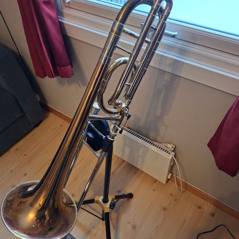 Vurdere å selge et fint og ganske sjeldent eksemplar av Olds P-24G dobbeltventil basstrombone.