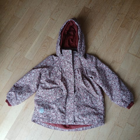 Dunjakke strl. 104 pent brukt med lommer og avtakbar hette, merke OUTWEAR