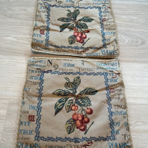Veggteppe/bilde i Gobelin med frynser. Sender gjerne med fiks ferdig.