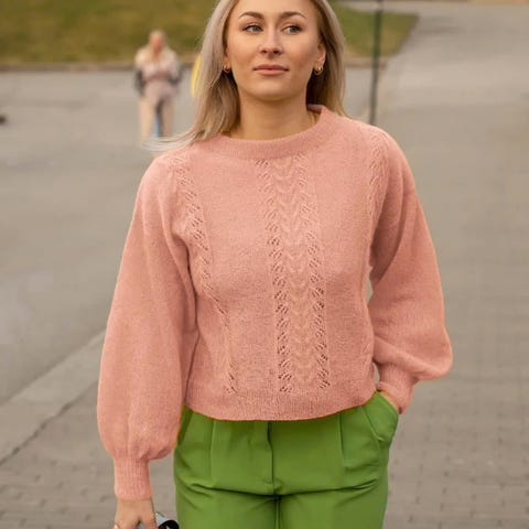 A KNIT STORY Strikkepakke: Pose med oppskrift og bunnfarge (10 nøster , nok til største størrelsen L/XL) Koks SFN75 + skinnmerke til Akslender Selges kr. 599,-
