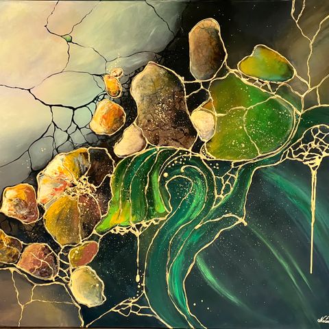 Lerret, akryl, epoxy, gull