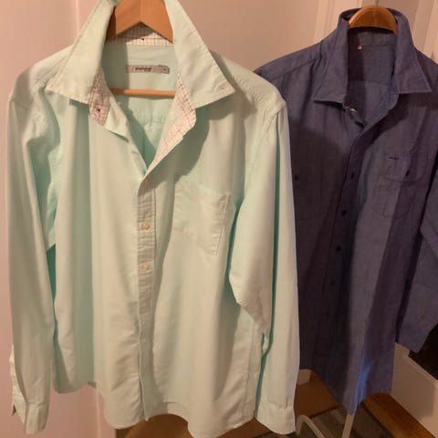Skjorter pent brukt i str L. Fargene er blå:blomstrete, blå, hvit og grå