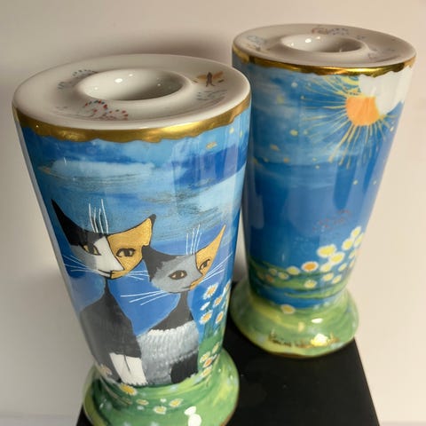 Vase og 2 lysestaker, Goebel, R. Wachtmeister, Firkløveren.