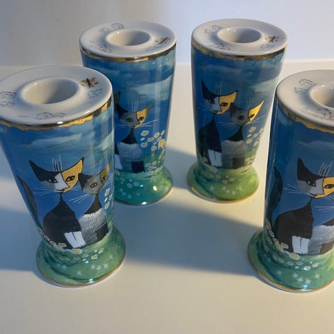 Lysestaker: høyde 11,5 og diameter øverst 5,8 cm. kr 150 pr. stk.