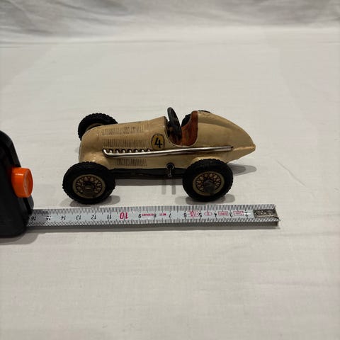 Selger en Schuco Mercedes 220 S Micro Racer Western Germany med opptrekk, brems og sving. Alt fungerer som det skal. Det medfølger original opptrekks nøkkel i metall med Schuco logo. Brems sitter i høyre bak vindu, og sving foretas med skruen som sitter bak over støtfanger og fungerer ved å vri denne mot høyre eller venstre. Bilen fremstår meget fin. Se bilder og vurder selv. Bilen selges for kr 650,- og kan hentes, eventuelt kan den sendes mot et tillegg på kr 76,- som liten Norges pakke.