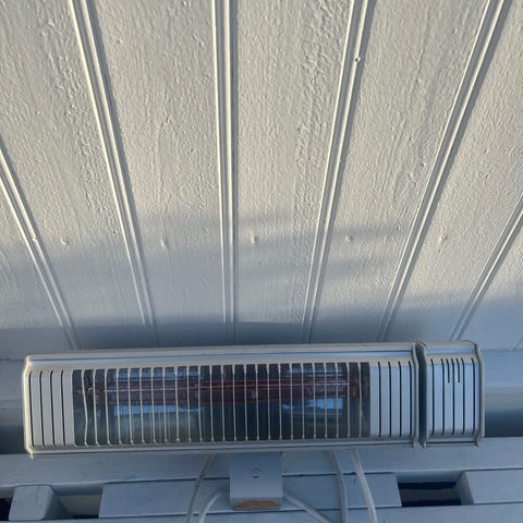 Varmelampe på strøm.Ikke stått ute om vinteren.