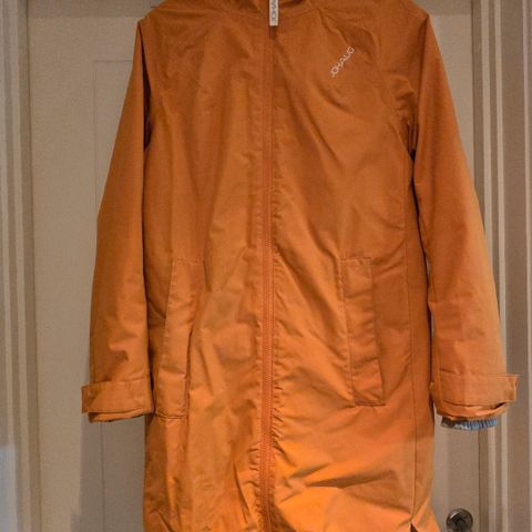 Brukt 1 gang. Vindtett og vannavstøtende materiale. Lyseblå farge.