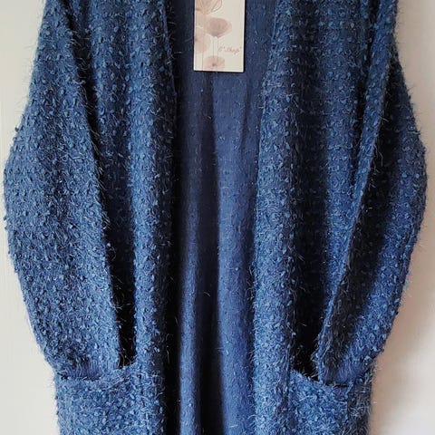 Fin, lysblå strikket jakke. Str. Medium. (38/40)