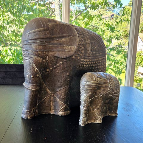 Veldig kul og strøken figur i steintøy, fra Gösta Grähs sin Clotis-serie med "oppblåste" dyr, for Rörstrand. Vintage, tidlig 80-tall.