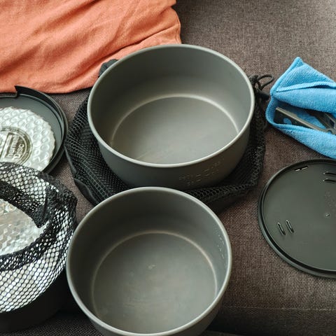 2 stk kokekar på hhv ca 1,6 og 2,0 liter + tekanne selges rimelig. De er godt brukt og det ene karet har fått kjørt seg litt, men de fungerer fortsatt som de skal. Hank medfølger for kokekarene.