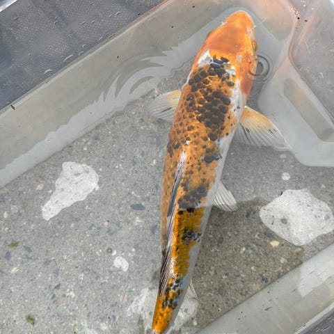 Det begynner å bli i overkant mange fisk i dammen,må derfor selge noen. Fiskene går ute om sommeren og inn om vinteren.
