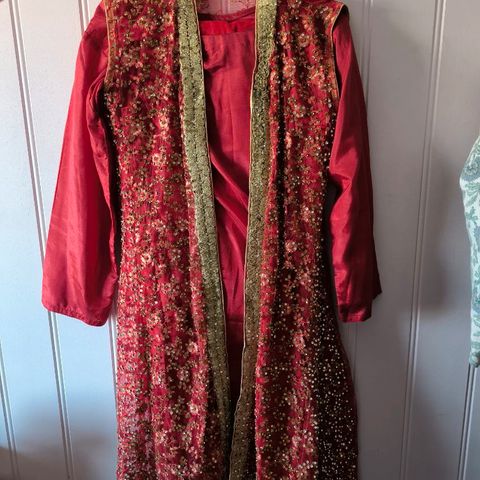 Selger denne stilrene pakistanske festkjolen i en vakker grønnfarge! ✨ Den kommer med matchende dubata (sjal) og bukse, noe som gjør den perfekt for bryllup, eid og andre spesielle anledninger. En tidløs og elegant kjole med et klassisk design. 🌿👗