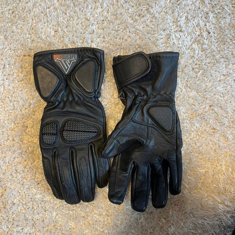 Aldri brukt skinn hansker. Str S. Vanntett.