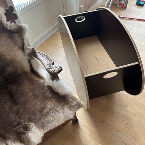 Selger denne fine vuggen da barna er vokst ut av den. Fargen er valnøtt, med noen bruksmerker.
