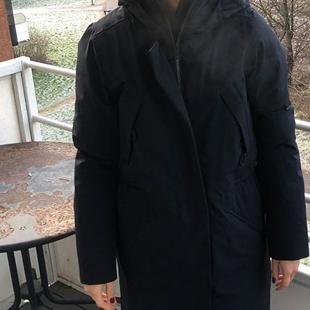 Fantastisk god og varm vinterjakke. Unikt utseende som er designet for å kunne bruke den på to forskjellige måter, enten den skal se ut som boblejakke, eller at den skal se mer ut som en parkas uten mønster. Tåler en god del vann og er vindtett.