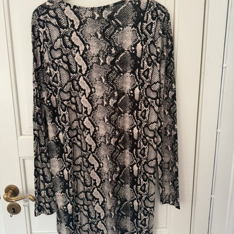 ✨️Myk løs og ledig kjole i lysbeige sort dyreprint. Tres over hodet. V hals.✨️