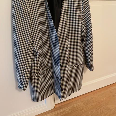 Myk og fin, stripete jakke i pepitamønster med knapper.
