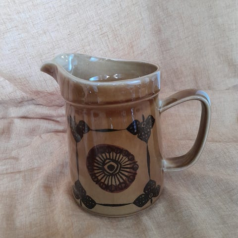 Flott vintage mugge i den fine dekoren Sera fra Stavangerflint. Noen riper på overflata, men veldig blank og fin og i helt super vintage stand. Ca 15 cm høy.