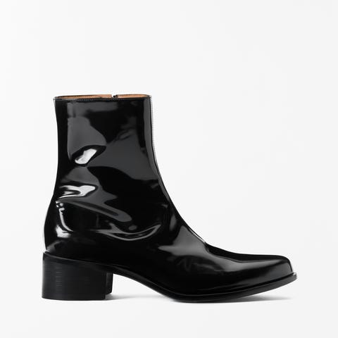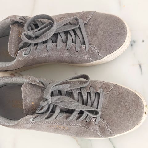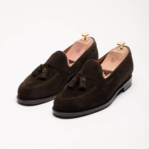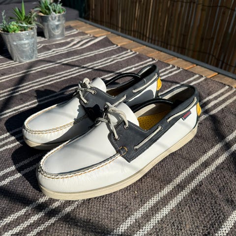 Stockholm herreskoene er hel ny, mørkeblå farge. Etiketten ligger på skoene forsatt.