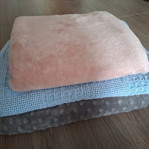 Lite og pent brukt fleeceteppe til baby med kaninører. Selges til 50kr.