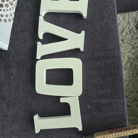 Malte tre bokstaver til vegg selges. Kan f.eks. brukes til navnet Magnus.