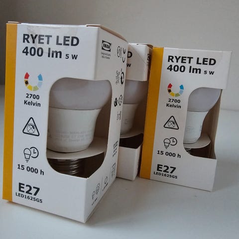 4 Lyspærer, LED E27 470lm. 6 Watt ubrukte