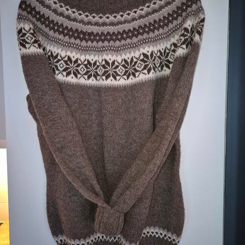Farge er meir kitt enn beige. Strikka i Sandnes sunday, og Sandnes følgetråd. Særs lite brukt