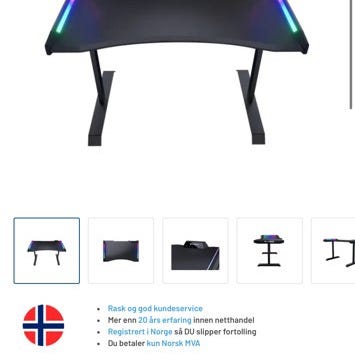 Selger pent bruk gaming bord, koster ca 4 000kr nytt. Har god plass til flere skjermer og har stativ til å henge fra seg headsett