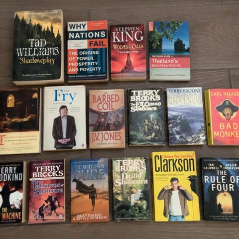 Kjøpt på 90-tallet. De engelske bøkene er kjøpt i Canada
