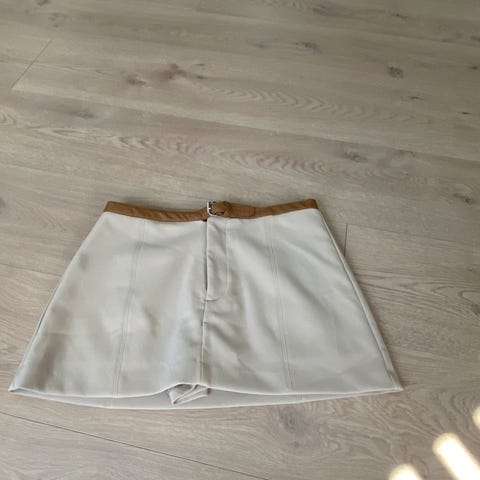 Selected Femme Beige Skjørt i skinn i størrelse S Skjørtet har et "belte" og knappe lukking, og er designet for en komfortabel passform. Passer til hverdagsbruk eller mer formelle anledninger. Selges som det er. Kan hentes i Bærum.