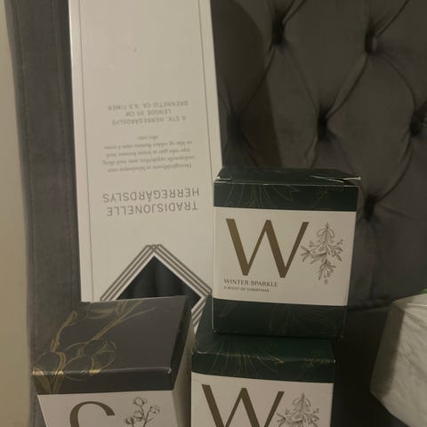 c) Welcome 2 bokser. Mål: høyde 17cm og bredde 10 cm.