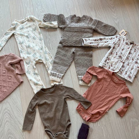 Barneklærne i bomullskvalitet er laget i en blanding av 50% bomull, 45% modal og 5 % elastan - noe som gjør dem supermyke og stretchy. Godt å ha på seg med andre ord :) Vi anbefaler vask på 30 grader med vrangen ut. Da holder barneklærne lenge. For å ta vare på den gode stretchen anbefaler vi også å ikke benytte skyllemiddel siden modalen liker seg best uten det.