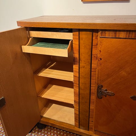 Selger delvis restaurert/redesignet svensk valnøtt skatoll designet av Egon Ostergaard for Bröderna Gustafssons.