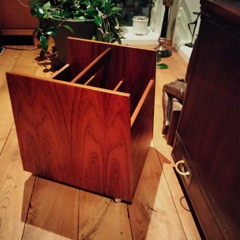 Nydelig teak radio, selges da jeg ikke har plass til den. Åpen på baksiden, slik at den kan brukes som TV-benk. Det er bare en glassplate, inne i radioen, så den fungerer ikke.