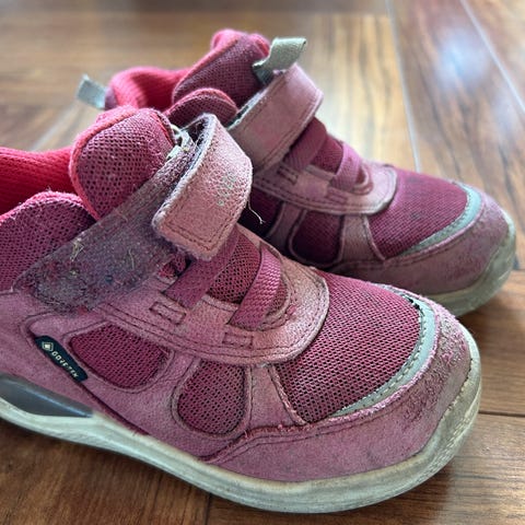 Selger pent brukte overgangssko til barn, farge grå med detaljer av gul og sølv farge, str. 26. Skoen har borrelås og en veldig komfortabel passform. Skoene kan brukes om våren og sommeren, samt som innesko. Yttersålene har blitt vasket.