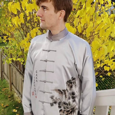 Det mangler knapp på den ene armen, men jakken har en reseveknapp på innsiden. Det er altså enkelt å fikse.