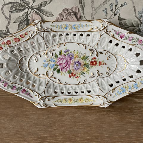 Nydelig vintage figur i hvit og blå porselen.
