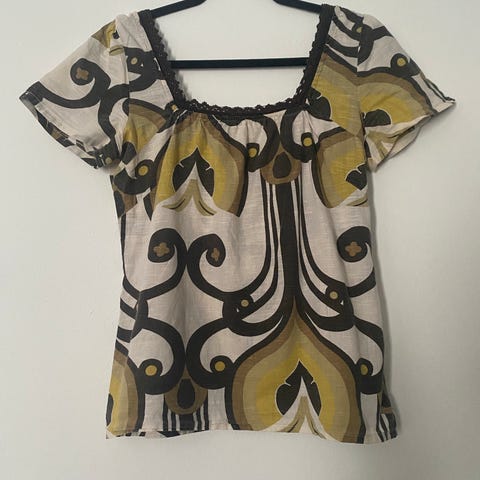 Selger spesiell offwhite bluse med sorte prikker. Innsvingt modell.