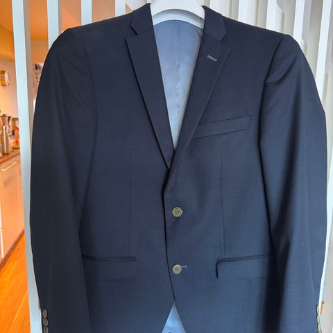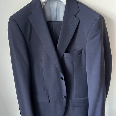 Jakke str 46, bukse str 48, se bilder for mer informasjon. Konfirmanten som har brukt den var ca 165-170 cm høy.