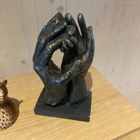Stilig dekorfigur i polyresin selges. Fin til å ha i f.eks. bokhylle.
