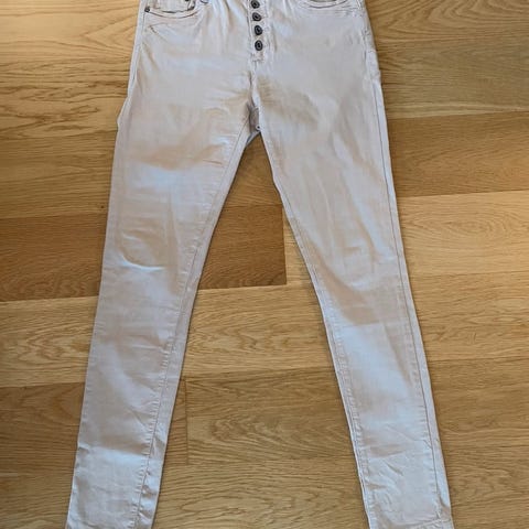 Som ny! Bukse fra MAPP, str. S, passer en str opp til 40, hvit bomull stretch, 98% bomull+2 elastan, skrålommer foran med glidelås, lommer bak, slim modell. Lengde ca 76 cm. En kjempefin og god kvalitets bukse.